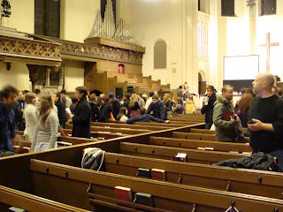 Finally, we taxied down to the Lower East Side and scurried to make it to the 7 pm service at Apostles Church, where JR Vassar pastors. We enjoyed lunch with JR on Friday where we got to ask lots of questions and hear about his vision for the city and the church. This service was in an Episcopal Church full of beauty and reverence. It was exciting to see many young professionals in the service.