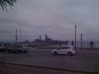 A Russian Warship that has docked very close to our home in the SF Bay. It's been 147 years since a Russian Warship had been in the bay. Just this week the Russian President met with our CA Governor Arnold Schwarzenegger at a local hotel in the city.