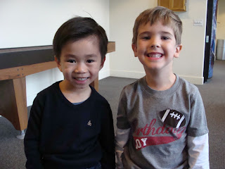 asher has made friends in the city through epic and at his brother's school. we celebrated recently with pizza and sugar cookies, per his request.