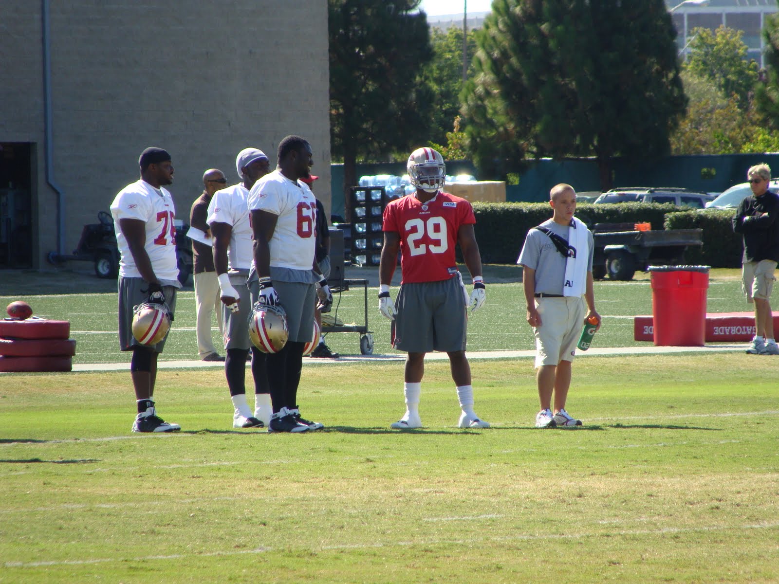 The boys did their own exercises while the 49ers were training.