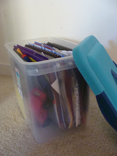 time will tell how well this system lasts and if we can keep them contained in one sterlite tub. with 13 hanging file folders standing at attention, most are empty, yet few are filled with school day accomplishments. each child creates a stack of their drawings, rewards, scraps of paper, reports throughout the year. come summer and the first sign of boredom, we pull out the stacks and begin to sift. and sift greatly. sift down to a few masterpieces that earn their place in the hanging file folder marked for that grade year.